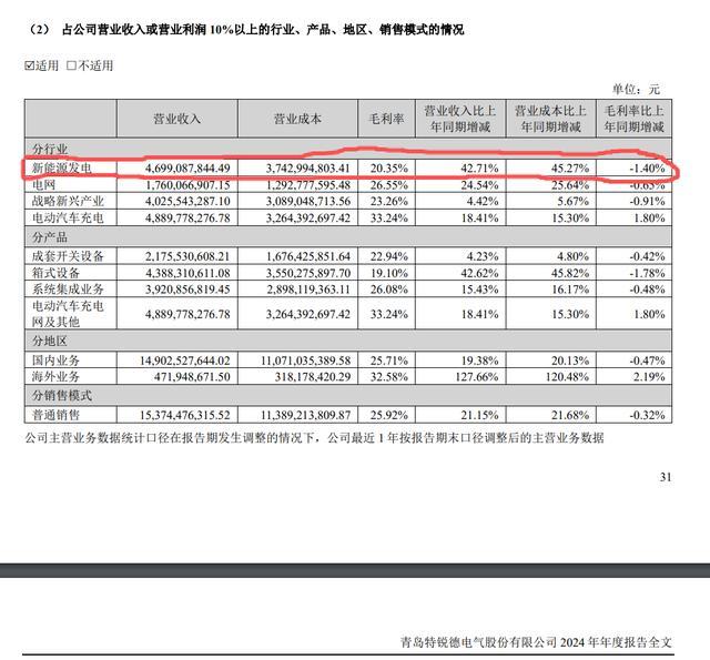 不外,据公司2024年报,其营收按照行业分为新动力发电、电网、计谋新兴产业及电动汽车充电,除计谋新兴产业增幅较慢外,其他三个行业皆有近20%大略更高的增长。其中,新动力发电业务营收的增长卓越40%。