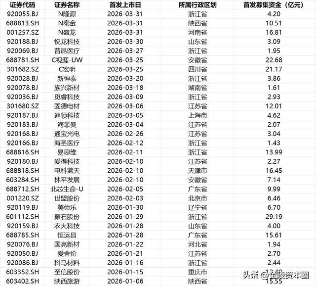 (2026年一季度A股新上市公司)