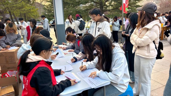 现场,学生志愿者代表还宣读了后生献血倡议书,大喊更多同学加入到无偿献血队列中来,用热血传递爱心,孝敬芳华力量。随后,山东医药大学学生志愿者面向签名墙签名,同期,部分学生现场登记并进行无偿献血、造血干细胞血样积累。不一会,UEDBET中国官方网站学校南广场上,两辆献血车前就排起了长队。队列中有不少重生面貌,记者了解到大一口腔学工夫(听障)班天然是第一次参与无偿献血步履,却险些是全班迁移,以致有的男生宿舍全宿舍都前来参与无偿献血。“这照旧是筛过一拨的东说念主了,班上还有很多女生也念念参与,但体格看法不达标,让我‘劝退’了。”班长李博文说。
