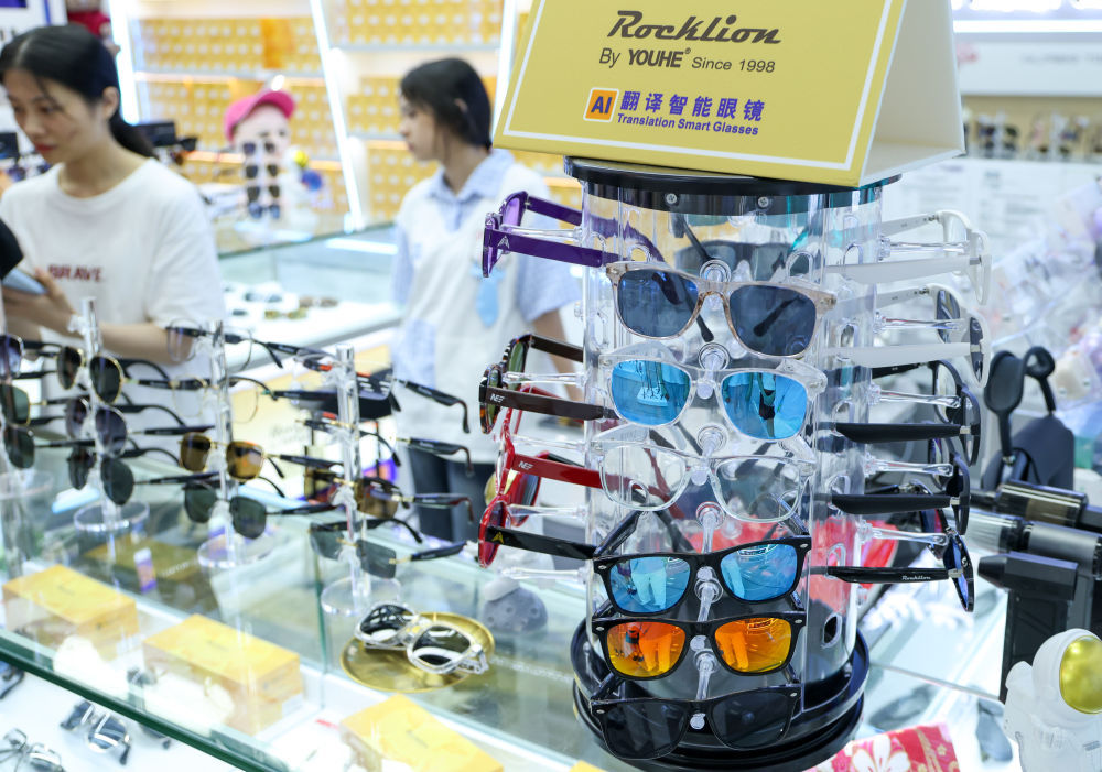 2025年7月22日,UEDBET官网 深圳华强北一家商户的柜台上摆放着不同形貌的智能眼镜。新华社记者 毛想倩 摄