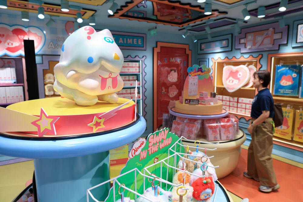 2025年10月28日,在广州的名创优品MINISO LAND(城市乐土店),主顾选购原创IP潮玩居品。新华社记者 毛想倩 摄