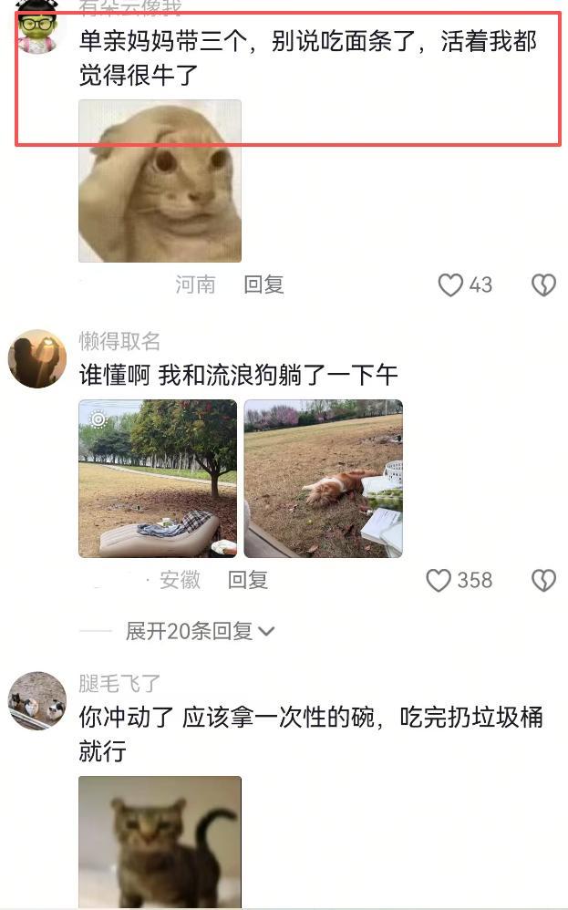 告成在家里吃,不是更好吗?野餐吃面条,少量野餐的氛围感齐莫得,傍边东谈主看着,也不像是野餐,省略是一家小叫花子,走在路边要到了一碗面条,各人狼吞虎咽的分着吃了。