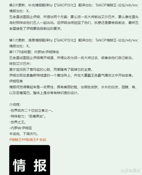 咱们知谈本周行将更新海贼王最新一期的漫画1179话,本话标题为内罗纳·伊姆来临,看来本话之中,伊姆终于来临艾尔巴夫了!